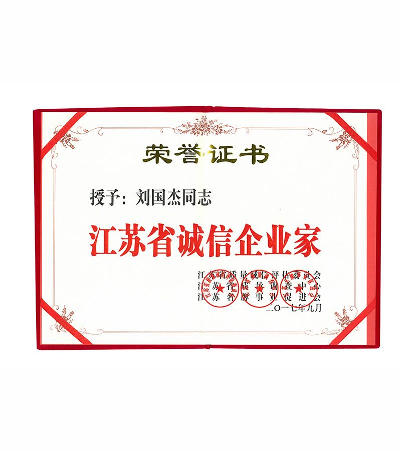 • 江蘇省誠信企業(yè)家證書